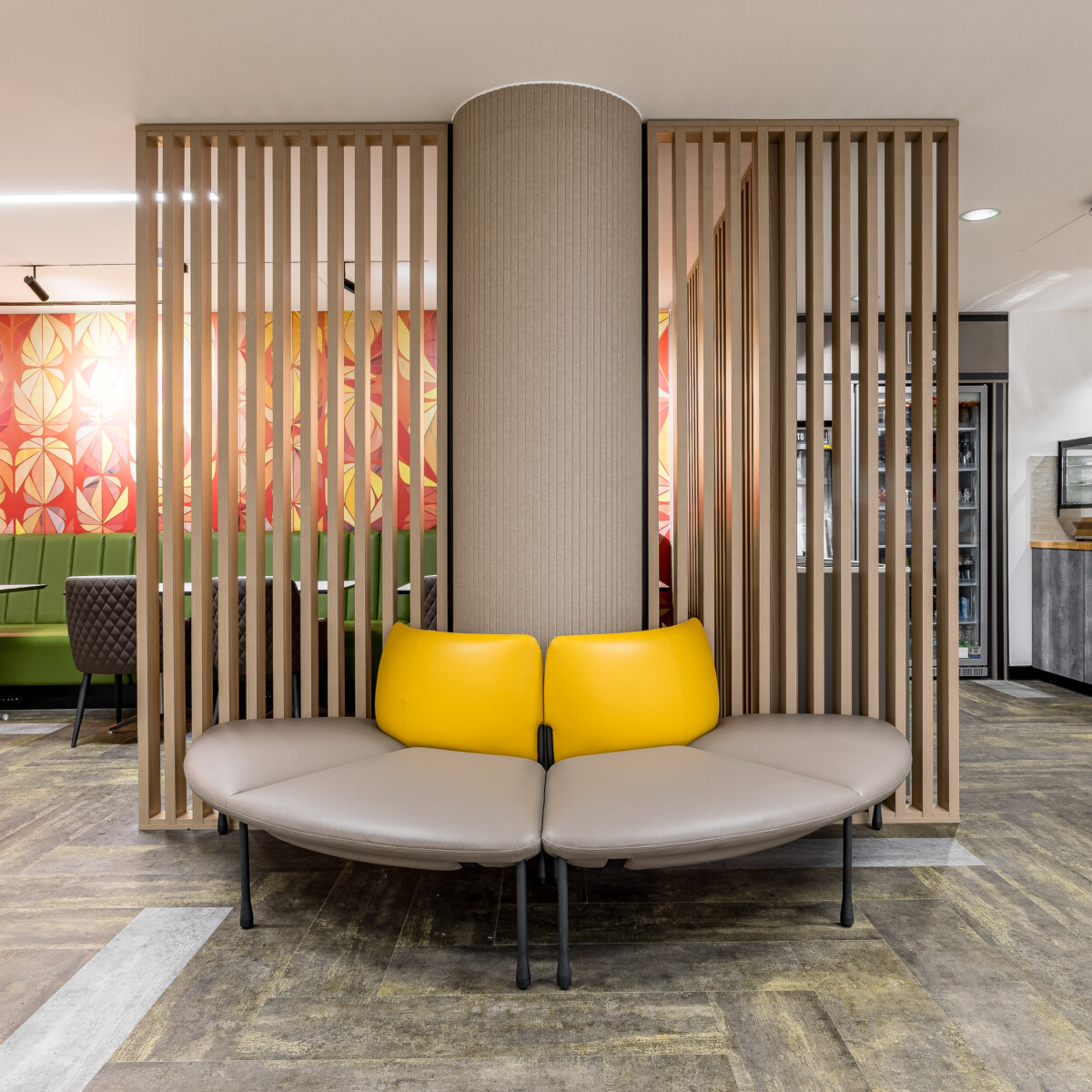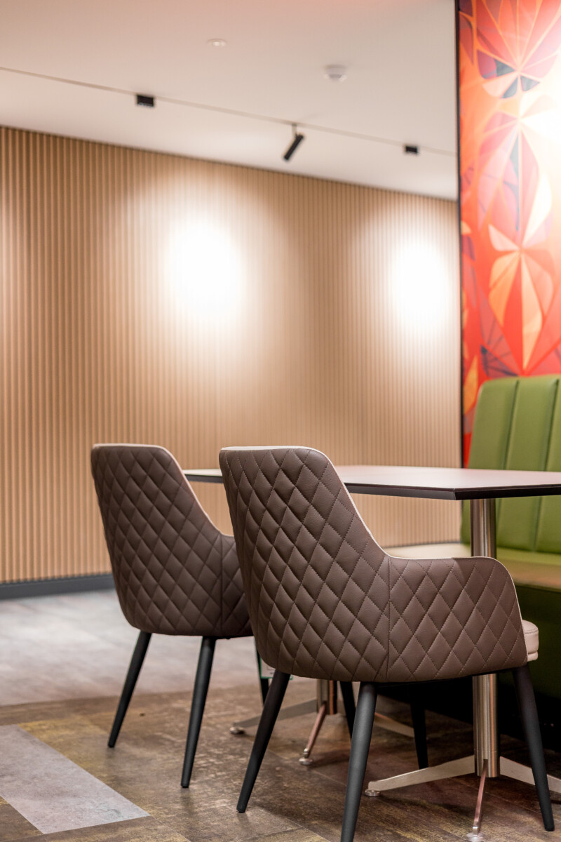 Beyond the reception area, WDL also delivered the full design and FF&E package for the new café, located just beyond the entrance gate. It features a harmonious blend of social seating, café-style arrangements, and warm natural finishes, creating an inviting environment for students & guests to meet, relax, and connect.